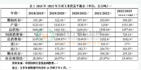 2022/23年度中国玉米供需与上月预测数保持一致。由于前期售粮进度迟缓,农户手中余粮同比偏多,市场供应宽松。需求方面,据国家统计局数据,2022年末生猪存栏创历史新高,能繁母猪存栏为正常保有量的1.07倍,预计猪饲料消费将维持高位,肉蛋需求春节后有望增加,预计禽饲料消费将保持增长态势;春节后深加工企业补库意愿增强,且开工率提高,玉米工业消费预期增加。