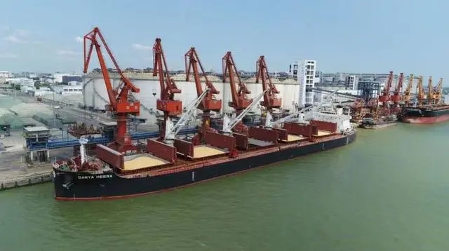 5月4日13时,从南非出发的“赫拉”轮(英文名MV DARYA HEERA)载货5.43万吨饲料玉米顺利靠泊东莞港麻涌港区,标志着首船我国从南非进口的饲料玉米顺利到港。