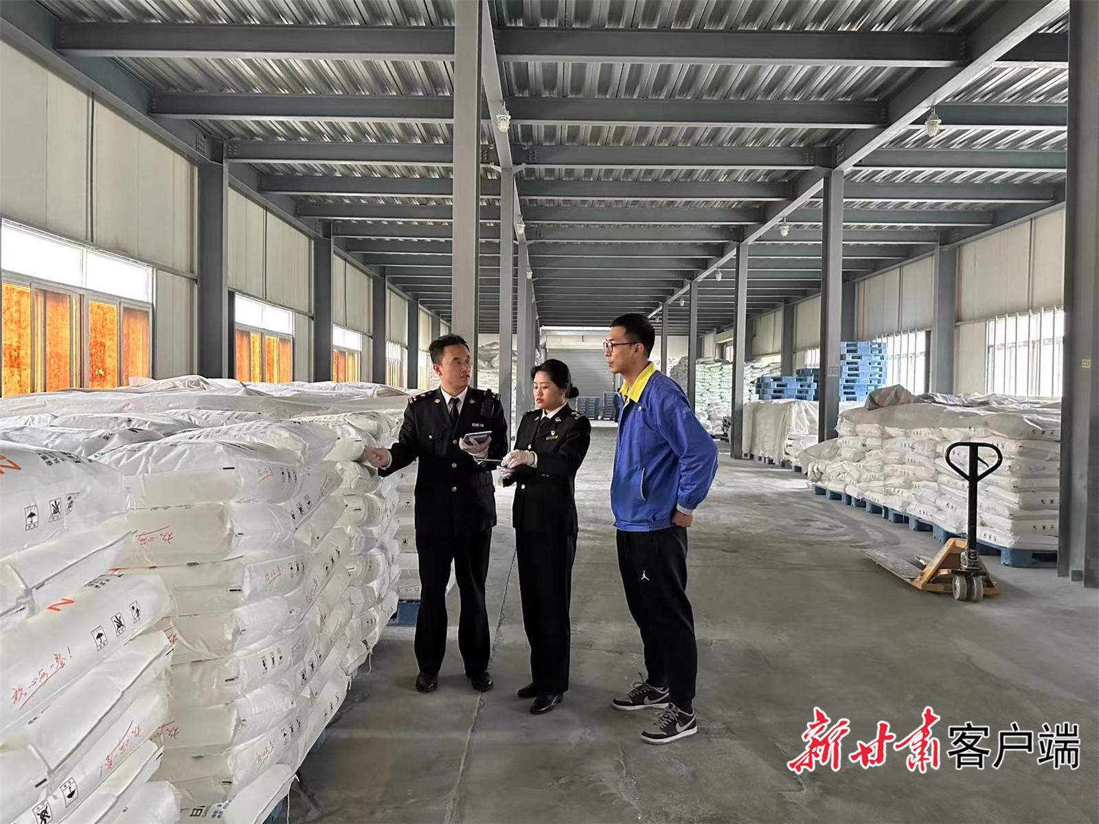 兰州海关所属天水海关关员现场查验玉米变性淀粉。葛晓玲 摄