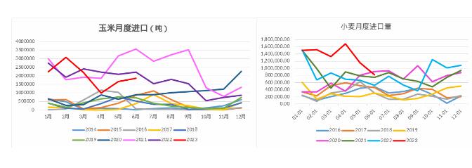 2023年上半年,我国四大谷物进口量为2727万吨,较去年同期减少4%。其中,小麦进口量增长明显,高粱进口量下降最为显著。海关总署数据显示,中国1~6月玉米进口量共计1203万吨,同比减少11.5%。分国别来看,1~6月我国自美国进口了469.4万吨,同比减少了44.34%;自乌克兰进口了433.53万吨,同比减少了11.73%;自巴西进口了221.48万吨,实现了从无到有的突破。进口结构的改变主要是今年新增了巴西的进口来源,且由于巴西玉米2022/23年度丰产,较乌克兰和美国有很大的价格优势。进口减少也说明上半年玉米缺口在二季度被小麦和临储水稻暂时填补。