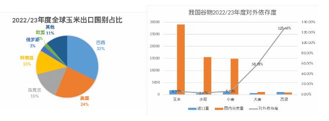 图8:2022/23年度全球玉米出口国别占比(%)图9:我国谷物2022/23年度对外依存度(%)