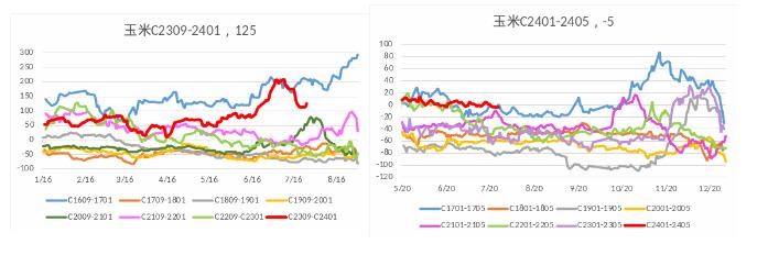 新季玉米方面,国内玉米产区天气多变,东北偏旱而华北高温降雨反复切换,不利于新季玉米生长的同时,对贸易粮源库存的威胁也在逐渐增加。前期贸易商建库成本及储存成本较高,现阶段库存较大的贸易商出货情绪较强,多数优质自然干玉米仍保持挺价出售。未来8月下游的需求支撑力度较弱,但美国玉米天气炒作延续,存量需求支撑玉米价格回落空间有限,新粮收获前玉米价格有望维持震荡偏强走势。价差套利方面,91可逢低做正套,因9月对标青黄不接的陈粮,而1月对标面积增加的新粮;15合约暂未走出趋势,可继续观望。