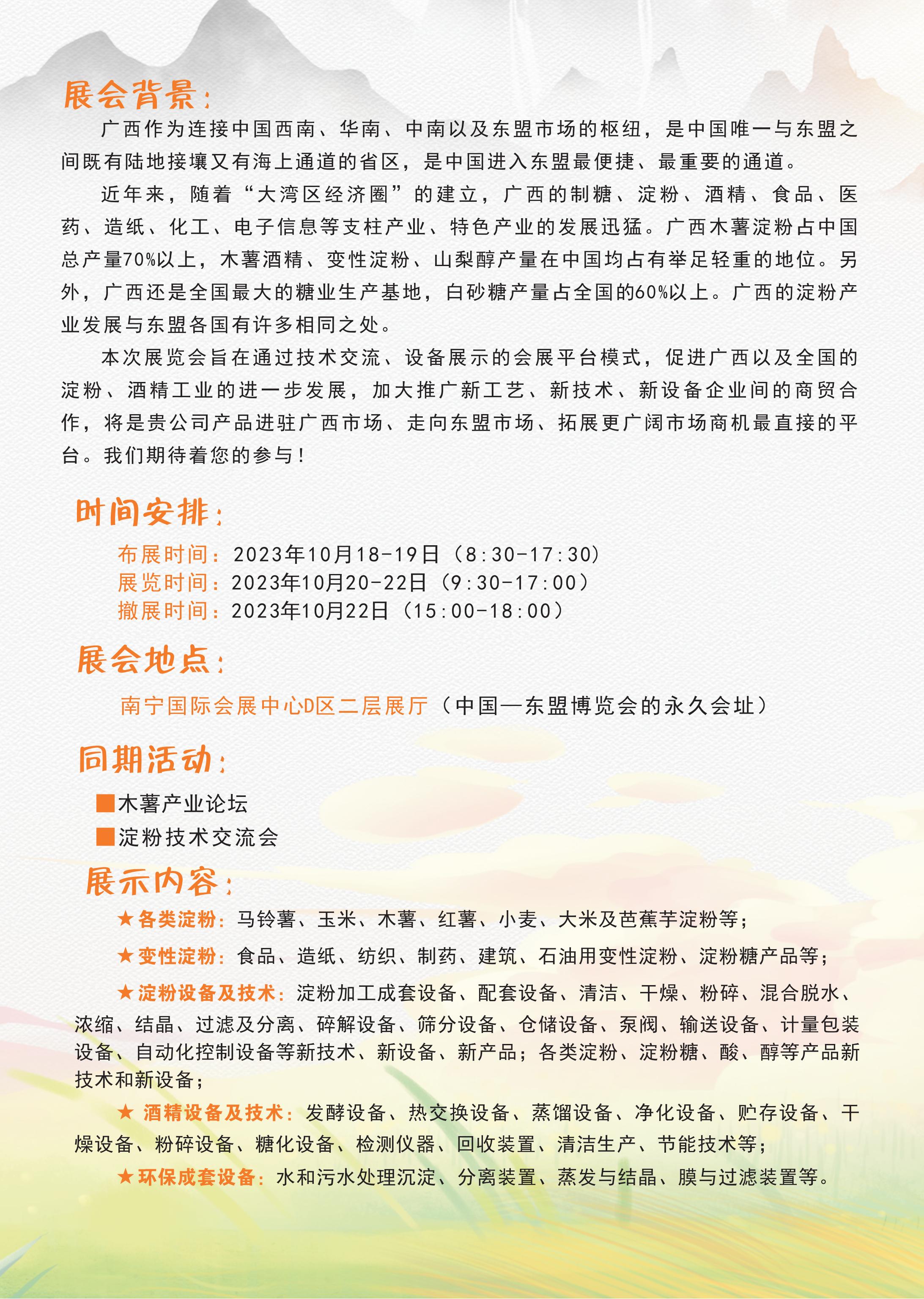 广西淀粉酒精技术及装备展 10月20- -22日南宁国际会展中心