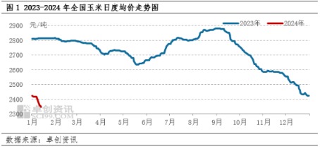 据卓创资讯数据监测,截止到1月16日,全国玉米均价2345.70元/吨,较上周五(1月12日)跌幅0.36%,较上月同期跌幅6.18%,较去年跌幅16.34%。东北及华北部分地区价格下跌,粮源有效供应仍然宽松,终端需求相对低迷,市场利多支撑不足,玉米价格仍然延续上周跌势。