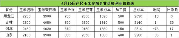 山东玉米助力,厂家挺价意愿浓厚。节假日期间,华北玉米也并不消停。假日期间山东地区玉米价格持续集中性上涨,截止6月19日当日,山东地区主流报价1800-1900元/吨左右,较节前价格上调20-40元/吨。玉米原粮价格持续上涨,企业加工成本增加。据我的农产品网统计,6月份主要产区玉米淀粉企业加工利润持续维持负利润状态,具体亏损状态可略见下表。加工利润持续缩减一定程度上也导致了淀粉企业提价、挺价意愿。