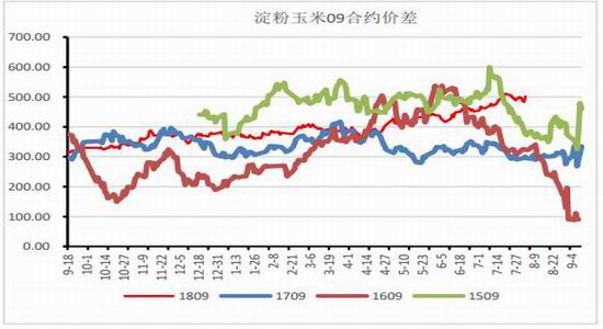 图3:淀粉玉米09合约价差(元/吨)