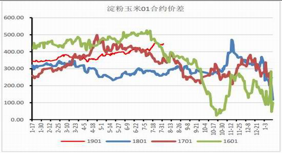 图4:淀粉玉米01合约价差(吨/元)
