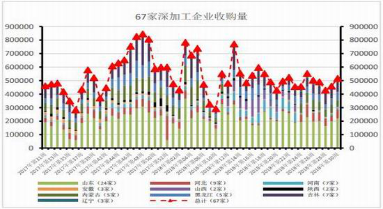 整体来看,陈玉米供应宽松,深加工企业因环保及季节性检修,开工率将继续下调,目前销售压力不大,局部带动情况下,企业挺价意愿较强使得淀粉仍将偏强运行,但深加工玉米加工量减少,不利玉米下游需求。