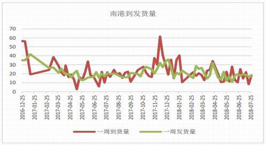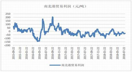 就港口库存来看,截止上周,北港库存373.7万吨,环比减少7.5万吨。南港库存56.4万吨,环比增加0.9万吨。总体来看,南北港库存均处于历史高位,库存压力较大。北港集港量44万吨,环比减少8.6万吨,下海量51.5万吨,环比减少5.4万吨,集港量下海量均有所减少,南港到货量18万吨,环比增加9.7万吨,发货量17.1万吨,持平,截止上周南北港价格稳定,贸易利润仍然倒挂,总体需求一般。