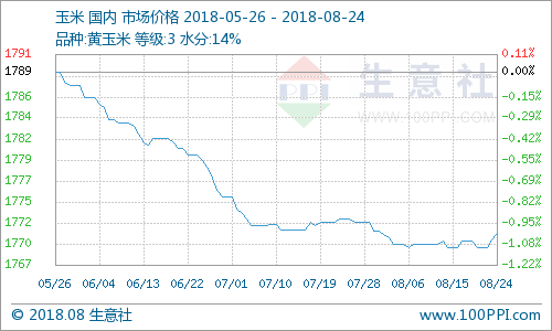 生意社玉米产品分析师李文旭认为:8月部分地区早玉米陆续上市,国储拍卖继续常态运行,陈粮市场供应充足,优质玉米粮源见底下游刚需不减,极端天气频发后市存减产预期,养殖业饲用需求持续疲软,燃料乙醇扩大推广提上日程,多空博弈,短期内国内玉米市场价格整体涨跌两难,预计下周国内玉米市场价格将继续位于1770元/公斤附近波动前行。