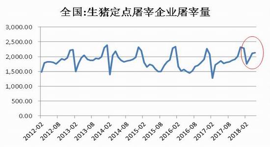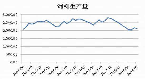 从养殖规律看,每年春节前是生猪出栏旺季,二季度是传统淡季,三季度开始出栏量逐步走高。2018年上半年生猪出栏量有显著异常,定点屠宰企业屠宰量数据显示,2018年上半年屠宰量接近旺季屠宰量。从结果上看,养殖企业在春节后加大生猪出栏力度,推动了上半年的猪价大跌,也使得国内生猪存栏量处于正常水平。饲料产量异常下滑也印证了这一点。