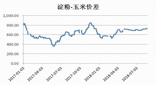 受环保及停产检修等因素影响,淀粉、酒精等下游产品供应偏紧,玉米淀粉库存下滑,价格维持稳步上升走势,玉米深加工产品淀粉、酒精利润较高,将带动企业采购需求。随着停产检修期结束,以及中秋国庆双节邻近,我们认为加工企业会加大采购力度,近期临储拍卖成交上升也有备货因素存在。但环保仍是不确定性因素,2017年9-10月份淀粉企业开工率便受到了环保政策的限制。环保政策抑制供应,会对淀粉价格形成支撑,导致淀粉与玉米之间价差继续扩大。