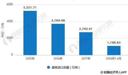 2015年- 2018年6月废纸进口总量统计情况
