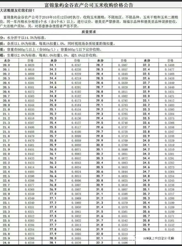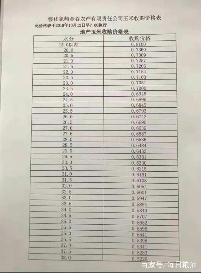 保龄宝2018年10月12日起,玉米价格上调5厘,价格执行0.93元/斤;玉锋集团10月11日晚上21:00起涨价1分,大量收购玉米,价格0.94元/斤。