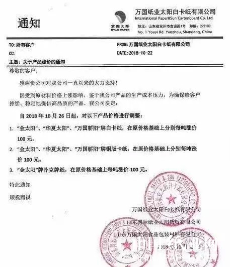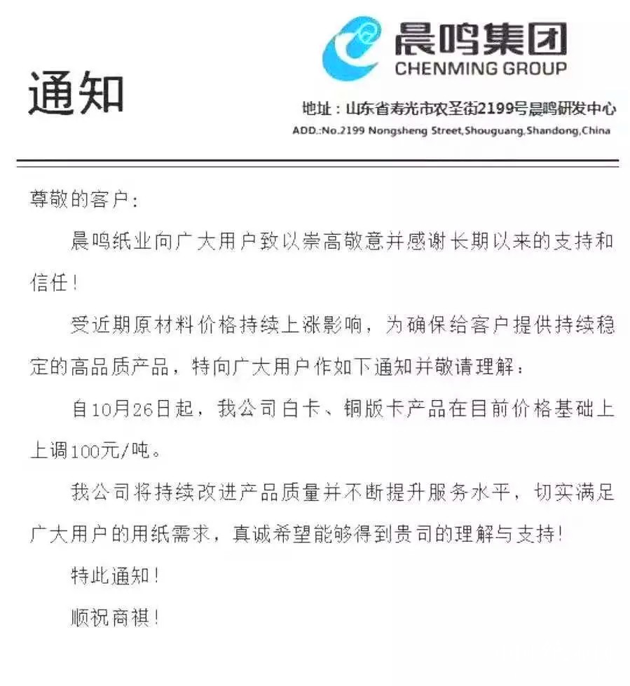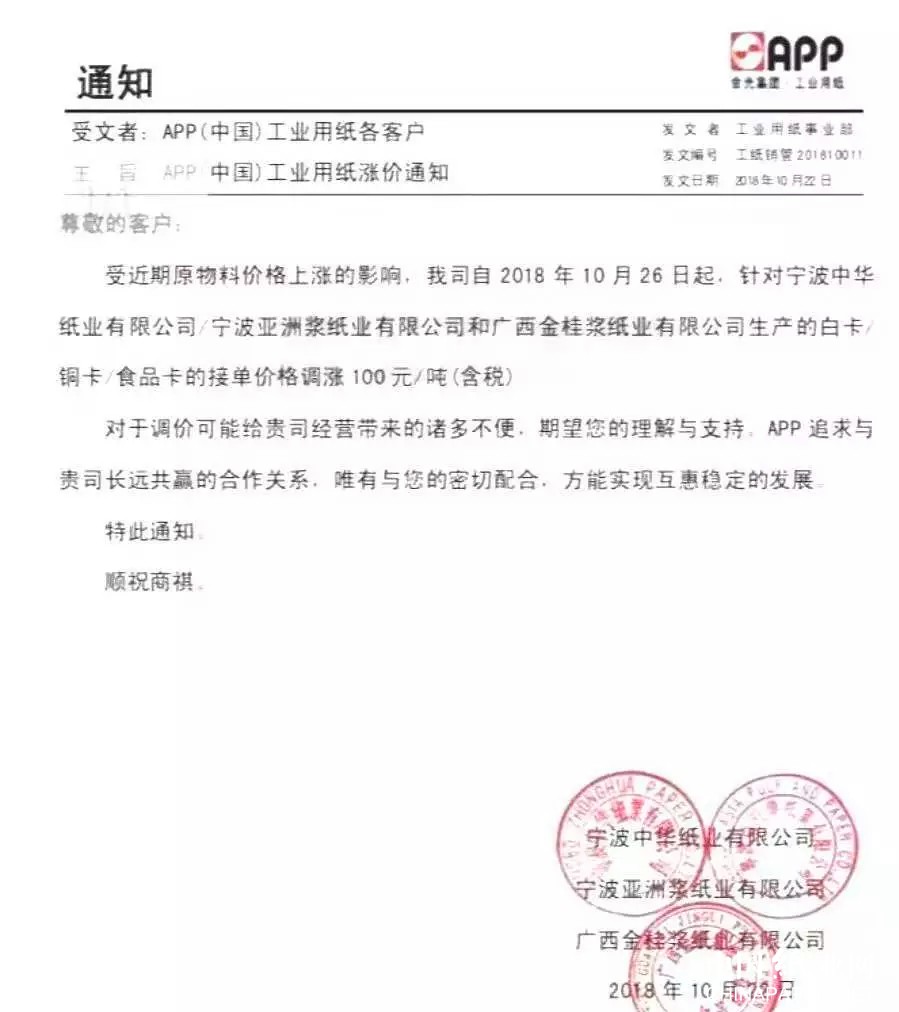 而这个“双十一”,等待我们的还不止快递的涨价。这不,玖龙、晨鸣、山鹰、博汇、联盛接连发出了涨价的通知。这一次“纸贵”,当然也是与“双11”、“双12”电商购物节都有关联。