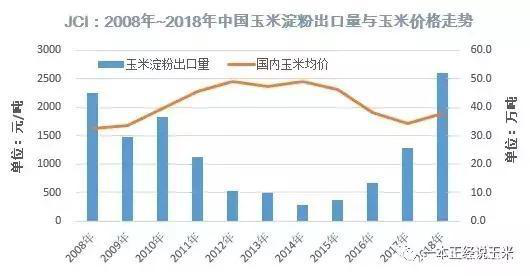 而在2018年全年,在低价临储玉米的冲击下,国内玉米市场价格水平重返低位——似乎,玉米价格下跌才是玉米下游产品出口回升的主要因素。