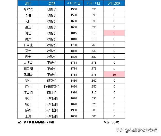 北方港口玉米集港价格相对稳定,锦州新粮15%水容重700玉米主流报价1740元/吨-1750元/吨,理论平舱1790-1800元/吨;鲅鱼圈主流报价1750元/吨,理论平舱1800元/吨,较昨日持平,广东散船主流报价1850元/吨-1870元/吨,较昨日持平;东北深加工企业收购价格个别继续上行,黑龙江收购1580-1680元/吨,吉林1650-1700元/吨,华北深加工企业玉米挂牌价格偏强震荡,区间1850-1900元/吨,南通港口码头价格稳中偏弱1860-1870元/吨。【布瑞克咨询】