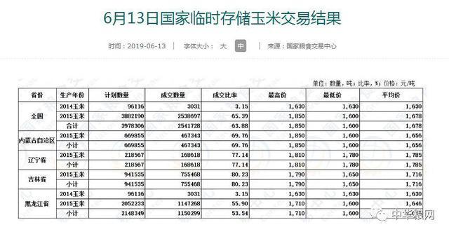 中粮公主岭公司6月13日最新收购价格上涨110元,二等及以上1860元/吨,扣量比1.2,三等1850元/吨,扣量比1.2。吉林省博大生化有限公司2019年6月14日8点起恢复玉米收购,折标价格1830元/吨,折扣比1:1.2。
