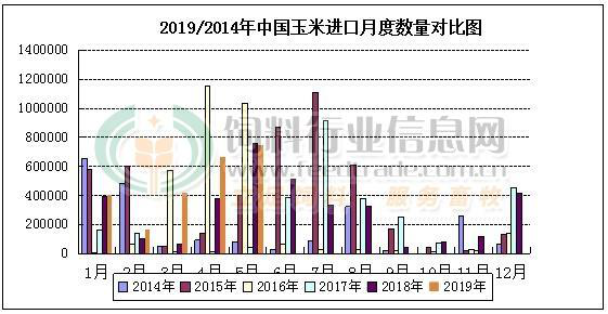 2014-2019年中国玉米进口数量统计图