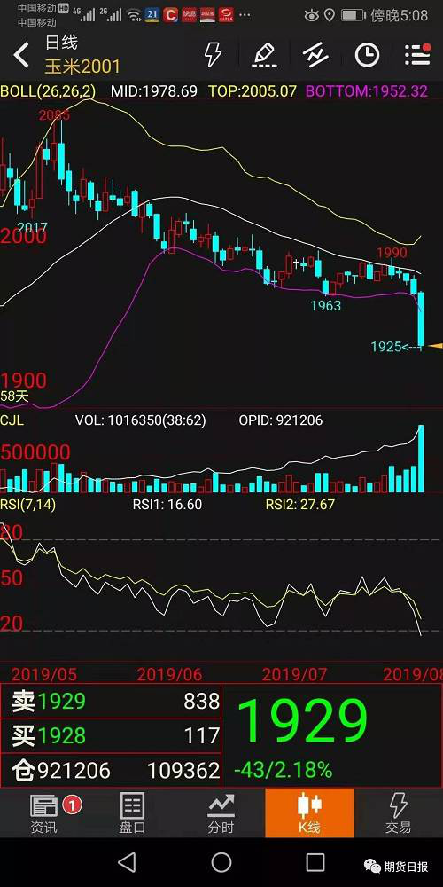 “1909合约玉米临近交割月了,期价持续下滑可以用很多理由解释,如需求不好、临储玉米成交率下滑等,但为什么远期2001合约期价也出现了大幅下跌呢?”“是什么原因造成这个合约期价下部突然就没有支撑了呢?”“敢不敢冒险一些趁此机会做多呢?”昨日国内期市刚一收盘,山东玉米套利投资者张总就给期货日报记者打来了电话,紧接着河北、上海与陕西的投资者和玉米贸易商也相继打来电话询问情况。沉寂多日的“玉米圈”瞬间热闹起来。