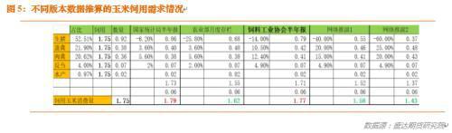 我们做了一组数据推衍,用不同版本的数据源做推到,推算出一组玉米饲用需求下降的数据,供大家参考。我们这里不做评判。