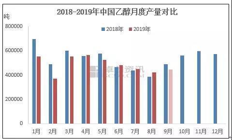 9月中国食用及工业乙醇产量预计44万吨附近,较上月增长接近2万吨,为2017年以来同期最低产量。需求低迷制约乙醇价格波动,作用到乙醇生产利润上,导致乙醇开工负荷低位徘徊。从产量分布结构成上来看,9月仅东北吉林、黑龙江两地产量占比达到48%,可见即便在东北新粮尚未开始大规模上市,东北玉米乙醇供应已经占据国内半壁江山。